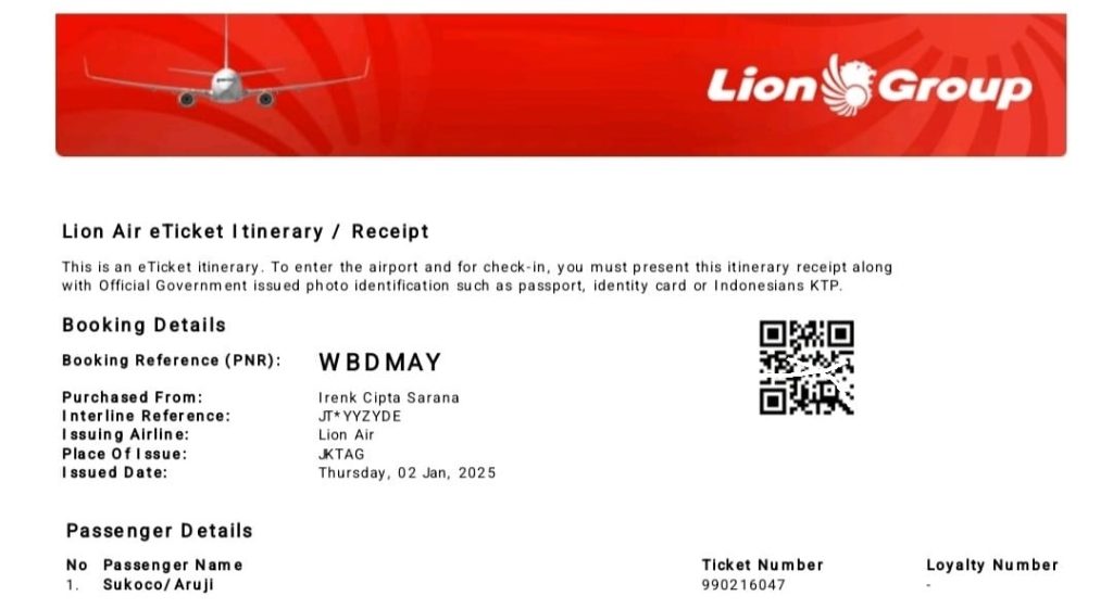 TIKET PESAWAT HARGA MASKAPAI IRENK TRAVEL Ruko Proklamasi Blok A No. 5 Kota Depok Jawa Barat Tiket Lion Air Group